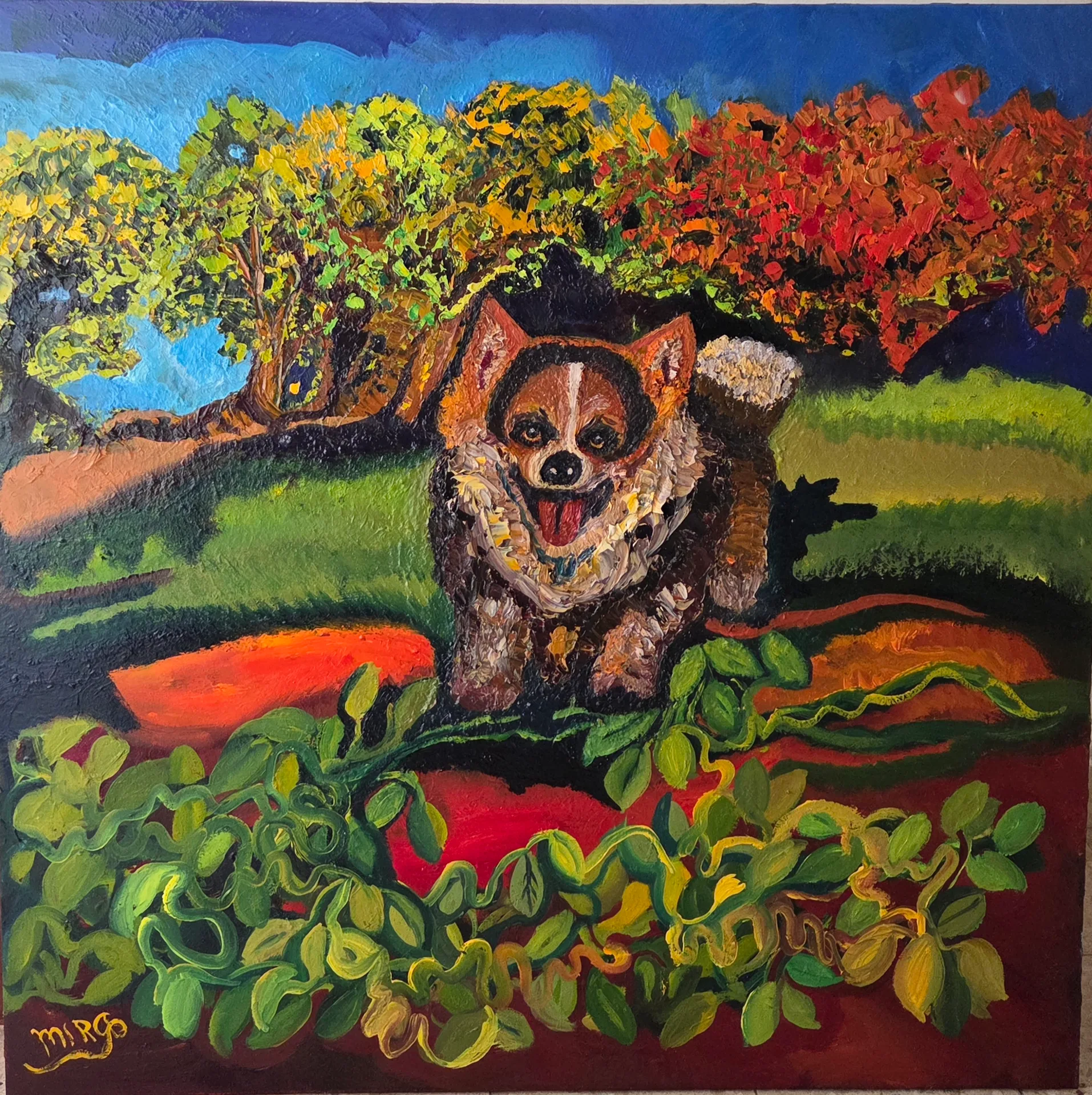 Our Korgi dog 80x80 oil